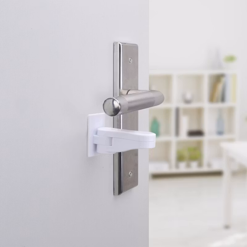 Forhindre at barn kan åpne dørhåndtak eller skapdører og risikere å klemme seg med denne smarte og praktiske barnesikre dørlåsen. Dørlåsen monteres med dobbeltsidig tape rett under dørhåndtaket på døren og forhindrer at dørhåndtaket kan trykkes ned slik at døren kan åpnes. Barnesikringen passer de fleste håndtak på markedet. Låsen kan også brukes på enklere skapdører for å forhindre at døren kan åpnes.