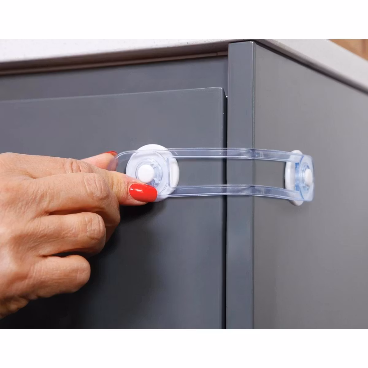 Multilåsen er laget av slitesterk silikon i høy kvalitet, og dets transparente og slanke design gjør at det passer godt inn i de fleste omgivelser og hjem. Monteres enkelt med dobbeltsidig tape (inkludert).
