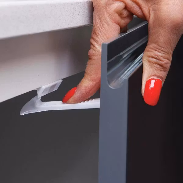 Skuffestopper for å barnesikre kjøkkenskuffer og skap