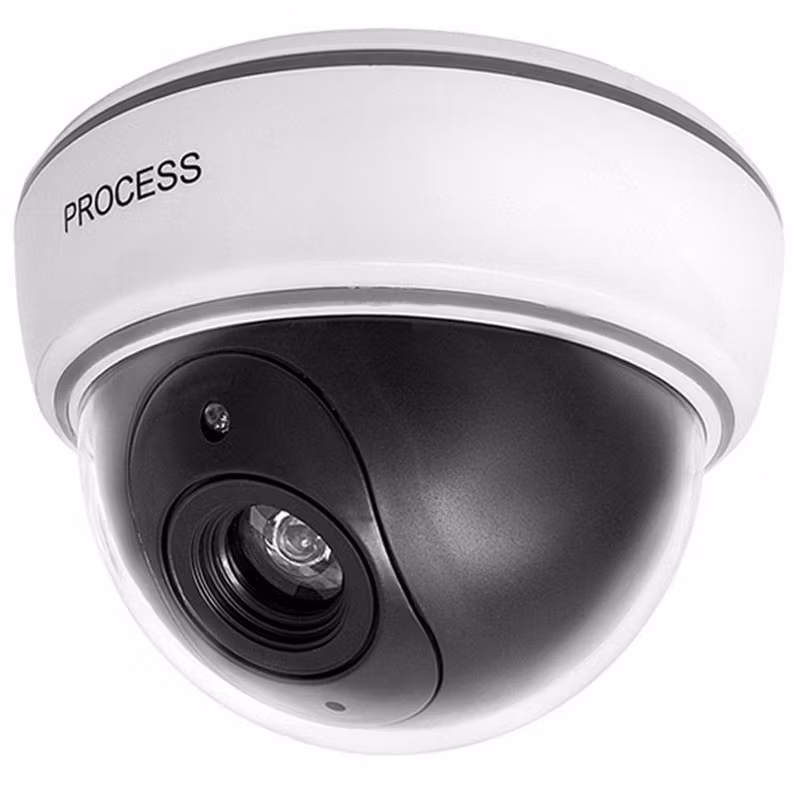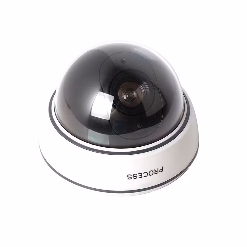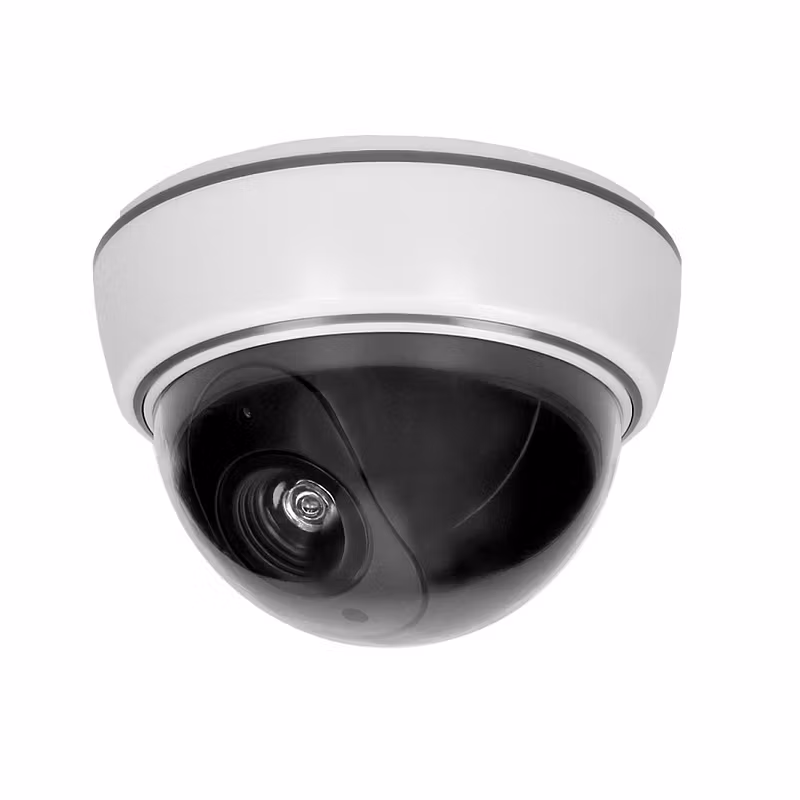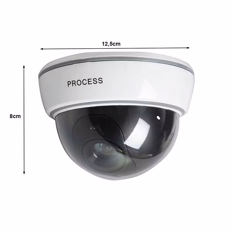 Skrem bort innbruddstyver eller forhindre nasking med denne svært realistiske kameraimitasjonen! Formet som en kuppel som er veldig lik ekte overvåkningskameraer som brukes i for eksempel butikker eller til alarmer. Kameraimitasjonen har, akkurat som et ekte overvåkningskamera, en kameralinse og andre attributter som gjør den vanskelig å skille fra et ekte overvåkningskamera. Utstyrt med en pulserende rød LED-diode som simulerer overvåkning og virker avskrekkende. Drives av 3 stk. AA-batterier (ikke inkludert) og er enkel å montere med det medfølgende festet og skruen.