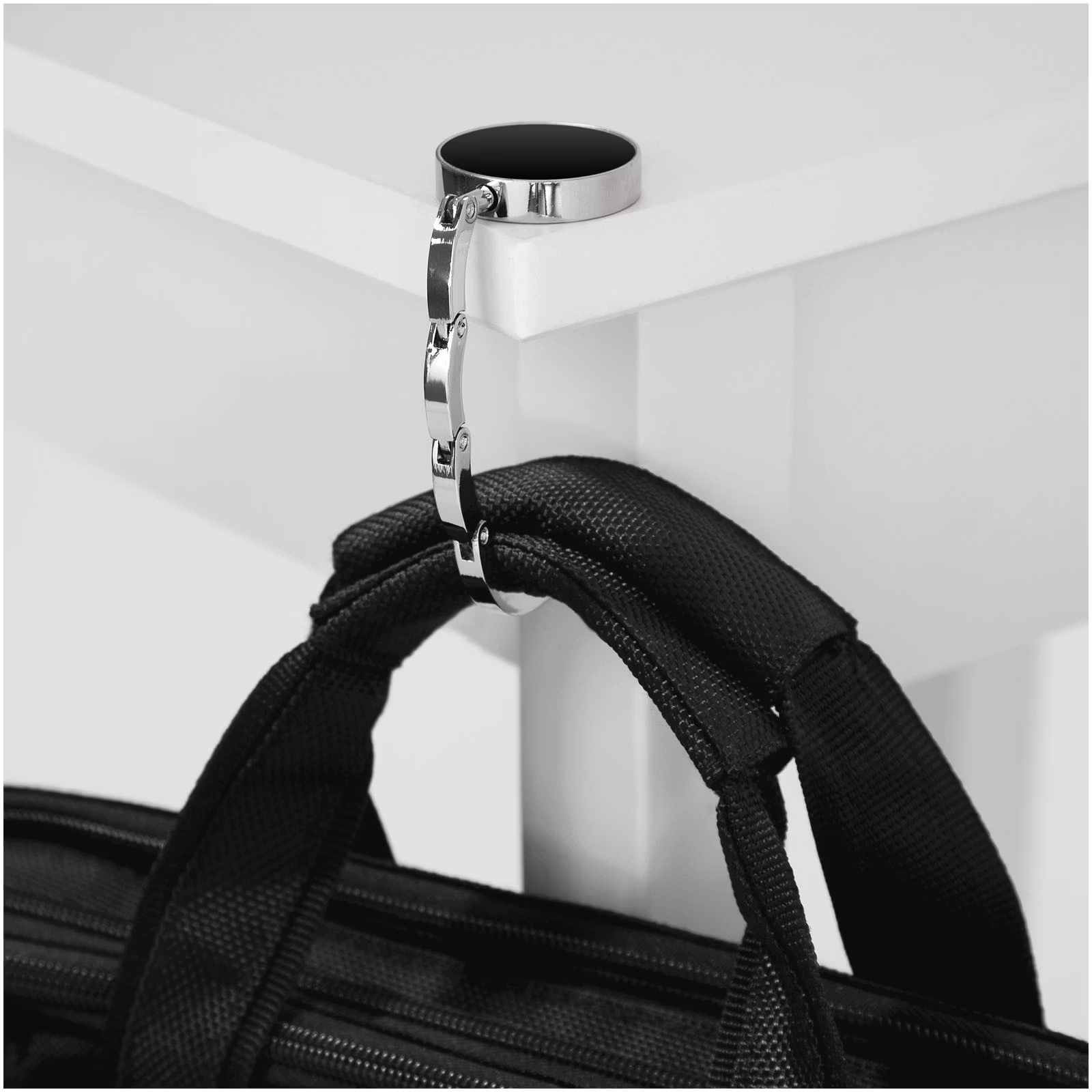 Med denne smarte sammenleggbare veskeholderen for håndvesken eller handleposen kan du enkelt holde oversikt over eiendelene dine når du for eksempel sitter på restaurant, i baren eller på kafeen. Den reduserer også risikoen for smuss eller bakterier på vesken din, som ellers er risikoen når du setter den på et skittent eller vått gulv.