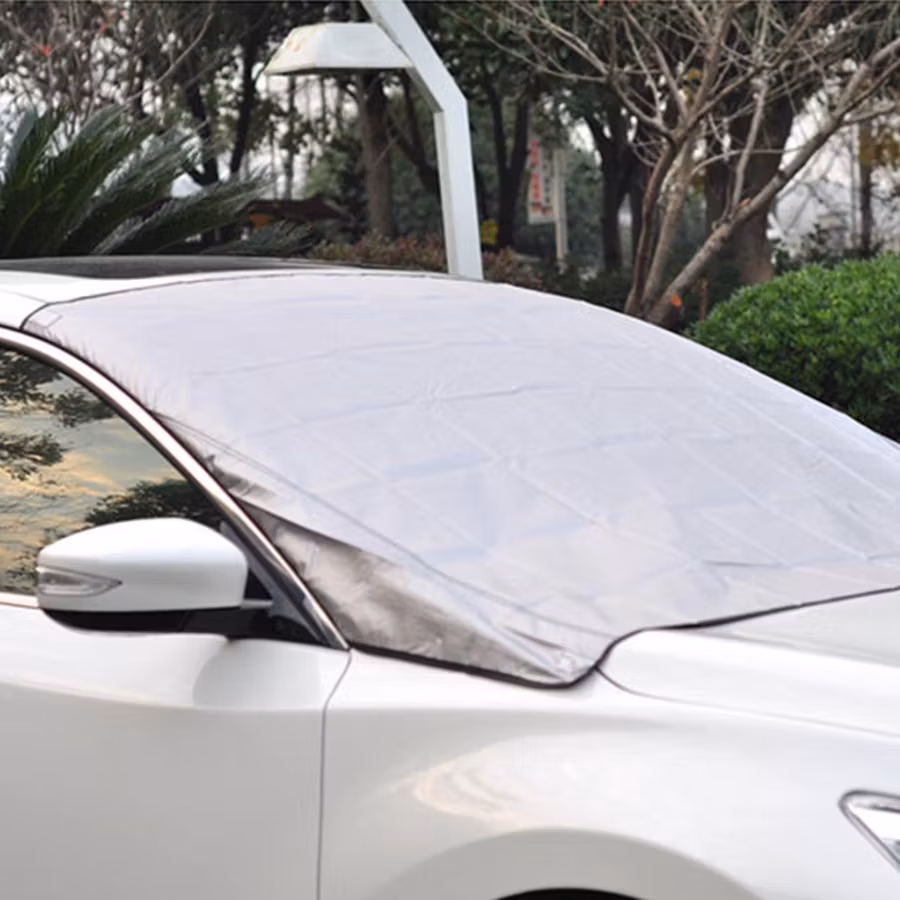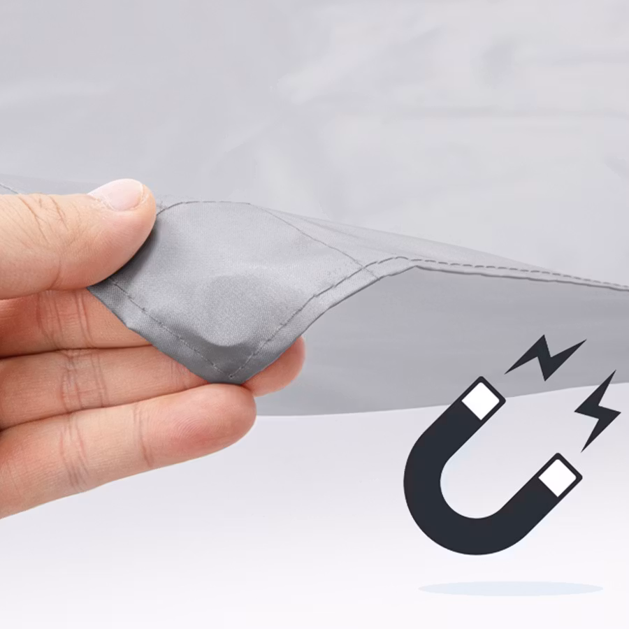 Frontrutebeskyttelsen er utstyrt med innsydde magneter i kantene slik at du enkelt kan feste frontrutebeskyttelsen til bilens utside uten å skade lakken, samtidig som du forhindrer at beskyttelsen blåser av.