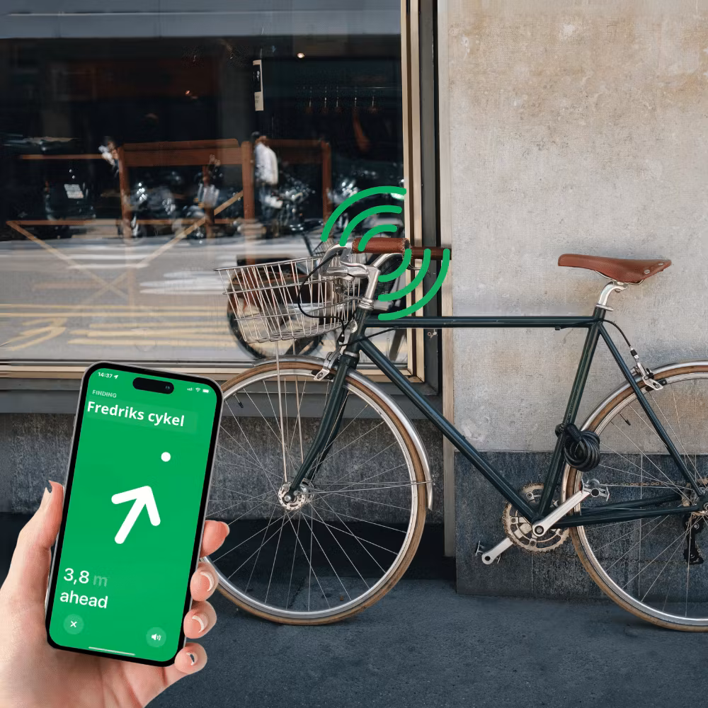 Ingen ekstra abonnementer er nødvendig! Sporingen er alltid aktiv i bakgrunnen, uten behov for separat AirTag eller egen app. Du kan også stille inn varsler som gir deg beskjed umiddelbart dersom sykkelen blir glemt igjen eller flyttet.