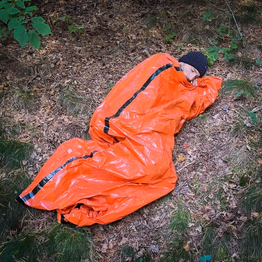 Nødsovepose designet for å holde deg varm og trygg i en nødsituasjon. Denne soveposen er laget av et snø-, vind- og vanntett materiale som reflekterer og beholder opptil 90 % av kroppsvarmen din. Et uunnværlig sikkerhetsutstyr og potensiell livredder hvis ulykken er ute.