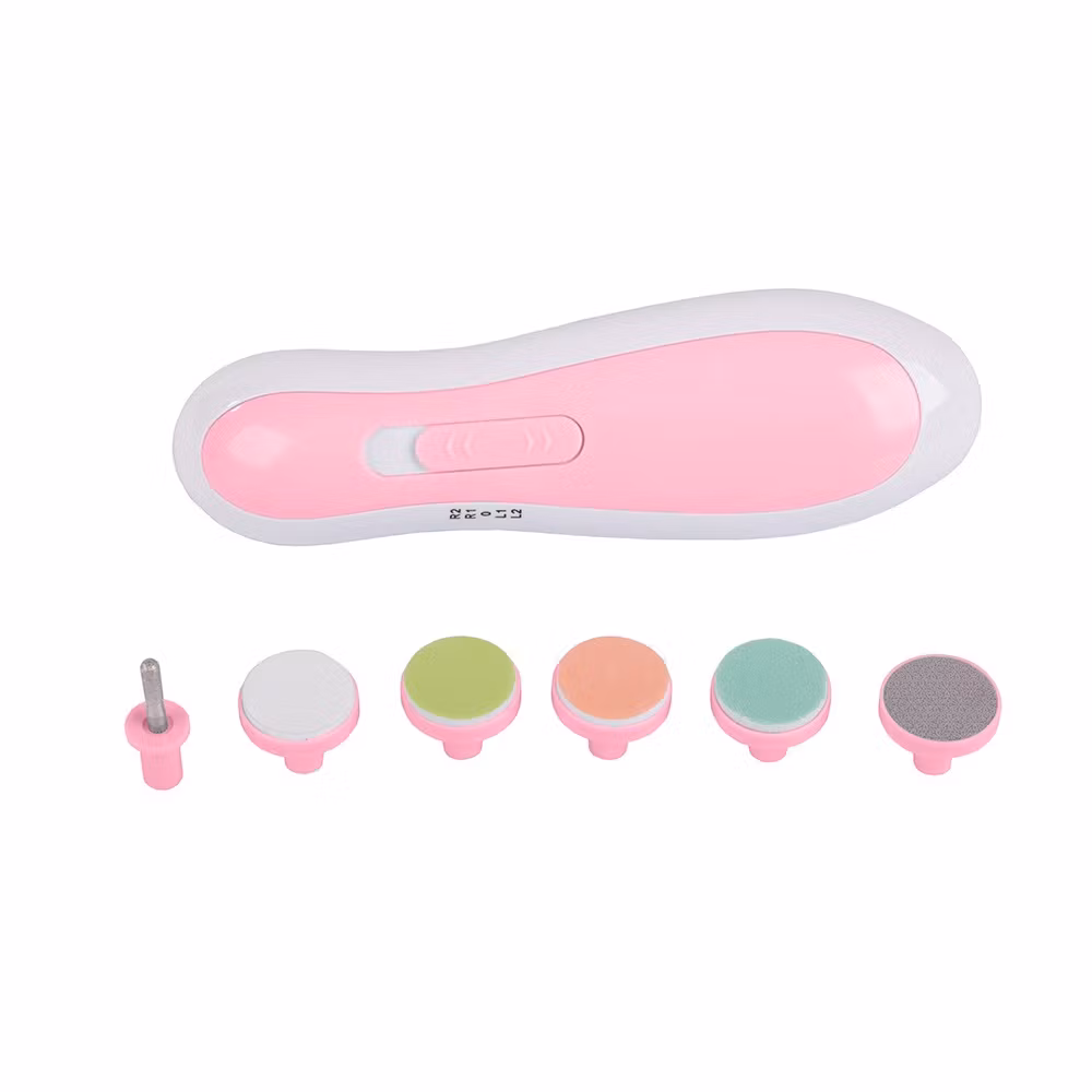 Trim, slip og poler lange eller skarpe negler med denne elektriske neglefilen. Negletrimmeren leveres med seks utskiftbare slipehoder med ulik grovhet og er godt egnet for både baby, barn og voksne. Kan brukes på både finger- og tånegler.